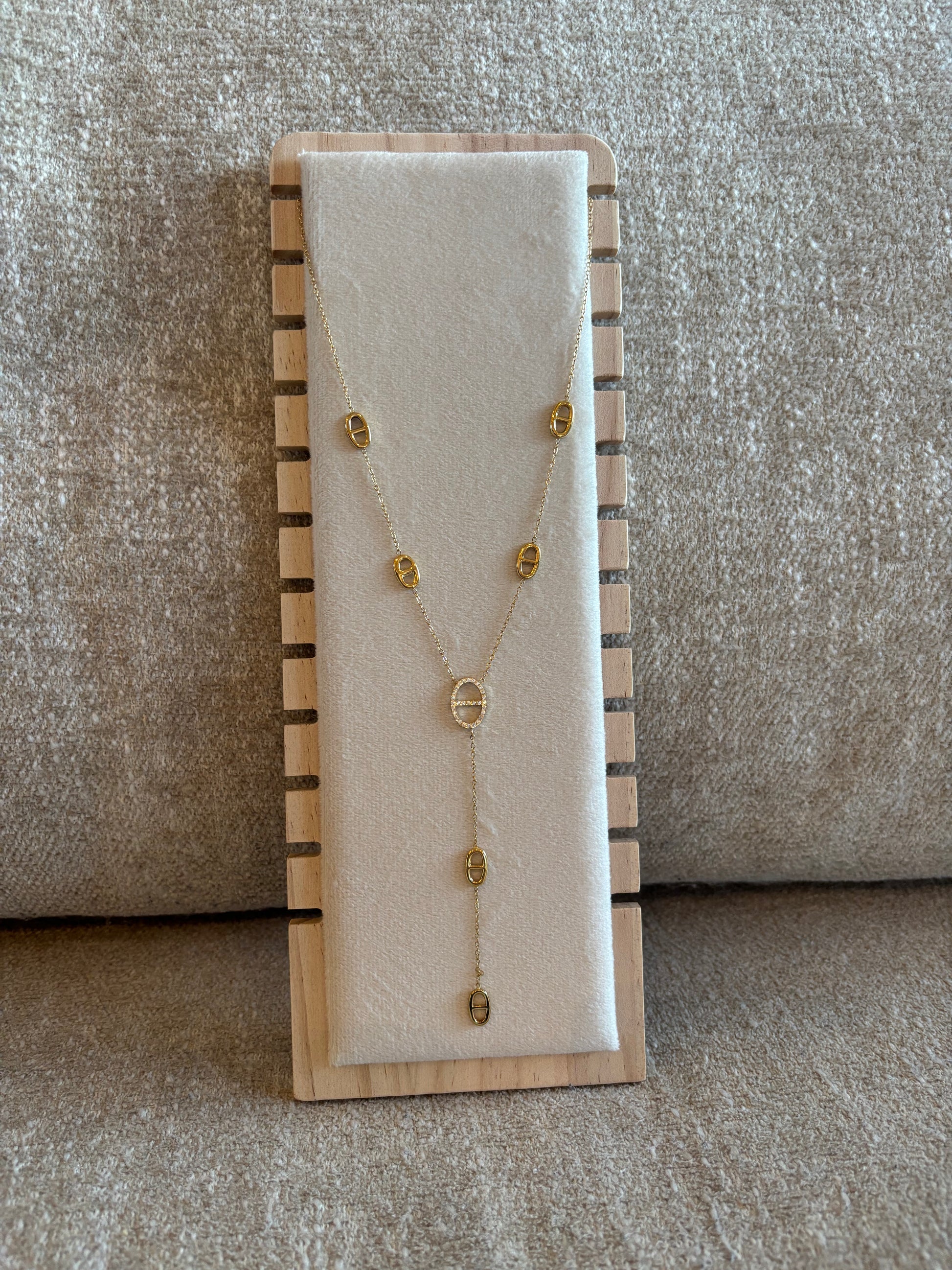 Collier Pénélope en acier inoxydable doré, un accessoire intemporel qui accompagne vos journées avec élégance.