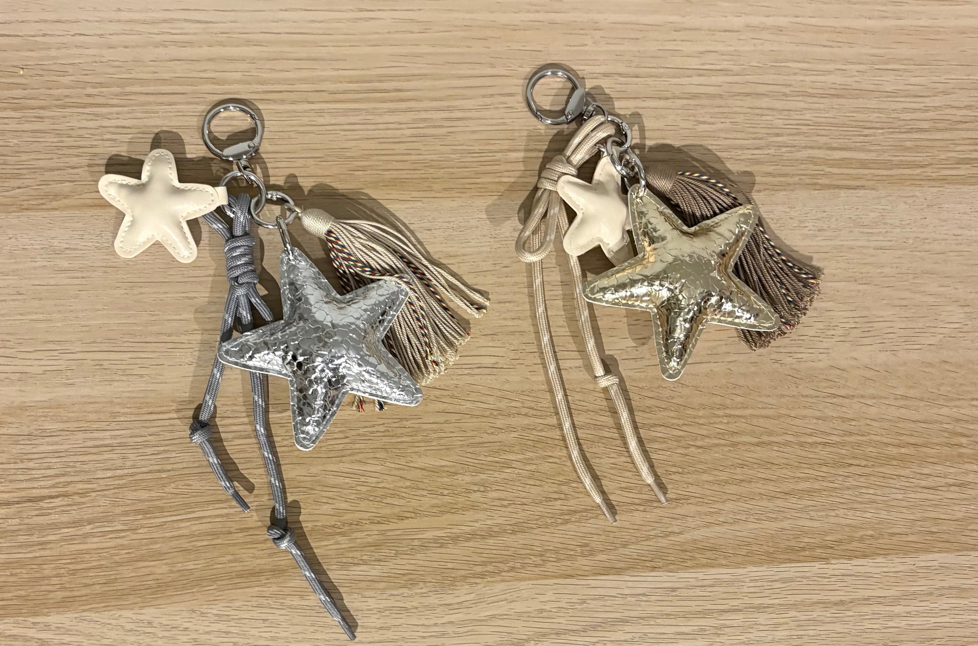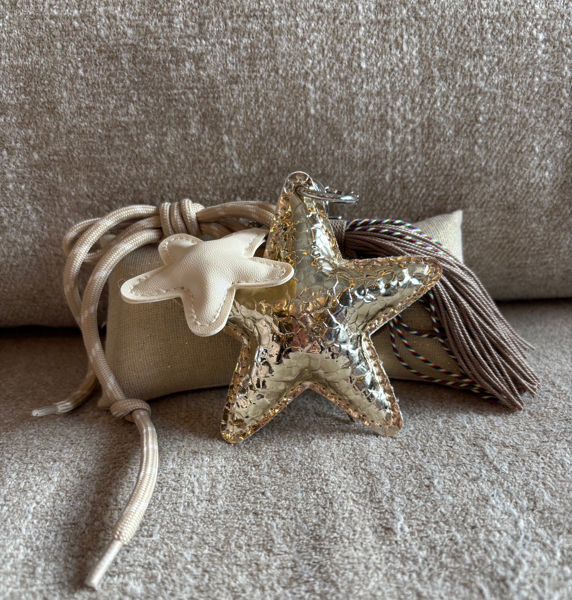 Porte-clés Romy doré aux finitions élégantes, orné d'une étoile brillante qui capte la lumière. Pratique et stylé, il s'accroche facilement à vos clés ou se transforme en breloque de sac pour ajouter une touche de sophistication à votre quotidien. Un accessoire incontournable qui allie fonctionnalité et charme, parfait pour vous ou comme cadeau délicat.