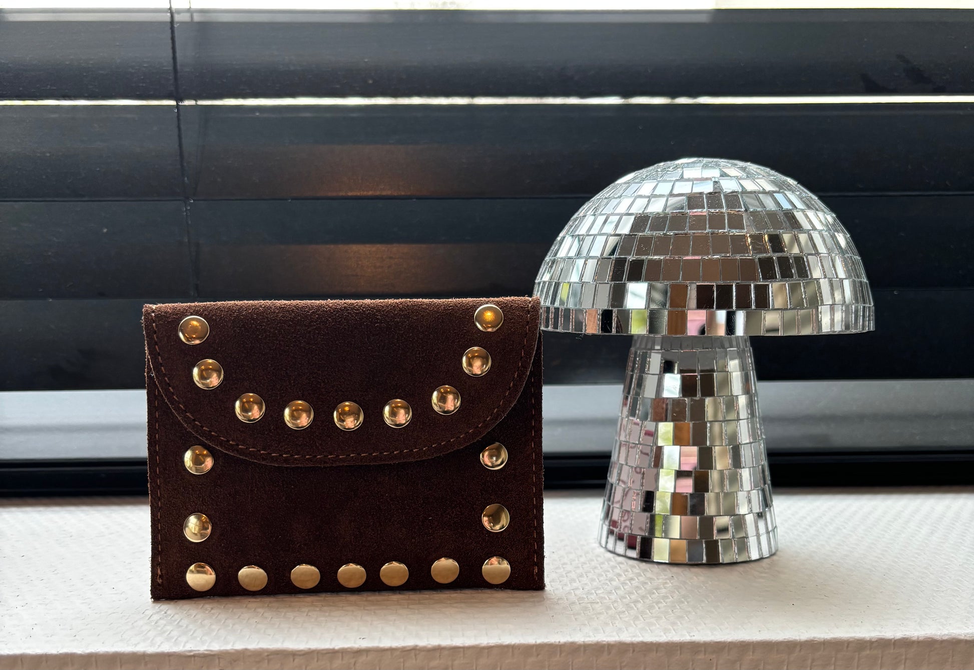 Craquez pour ce porte-monnaie Stella en daim cognac, un accessoire incontournable pour vos sorties. Ses clous dorés apportent une touche d'élégance et de sophistication.